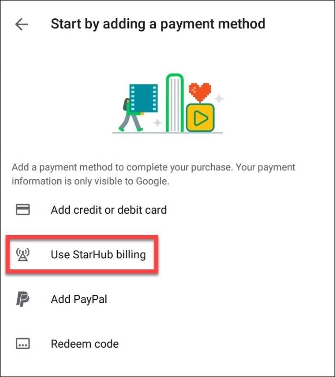 For Android users, when you access to the Google Play Store and download paid applications via mobile data, Play Store will prompt out different payment methods for you to pay for the app.