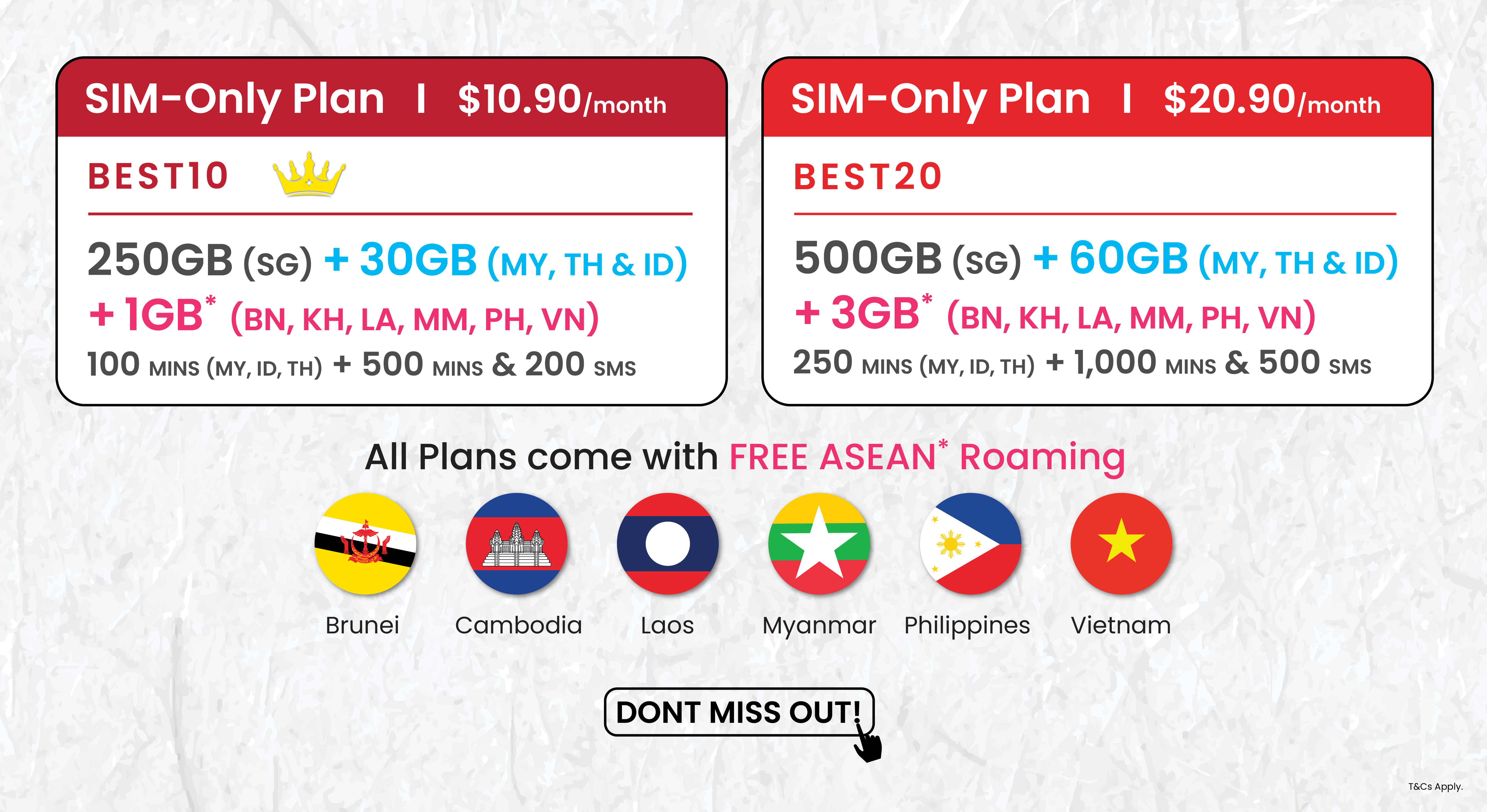 We offer two new promotional plans: BEST10B and BEST20B, effective 21 April 2025.